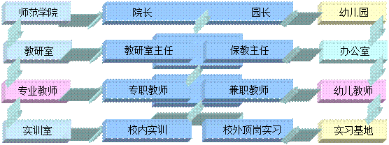 校园共建“双师”教学团队和实训实习教学团队。制定优惠政策,从幼儿园引进专业基础扎实、有丰富实践经验、操作技能水平高的专业骨干教师和管理人员担任兼职教师,学院在津贴分配等方面对幼儿园兼职教师实行倾斜政策,建立由幼儿园骨干教师组成的“兼职教师库”;通过校园专业指导委员会、校园合作办学办公室,实现幼儿园骨干教师和学院专业教师对口交流,让合作幼儿园定期接受教师顶岗工作,让幼儿园骨干教师定期到学院授课。