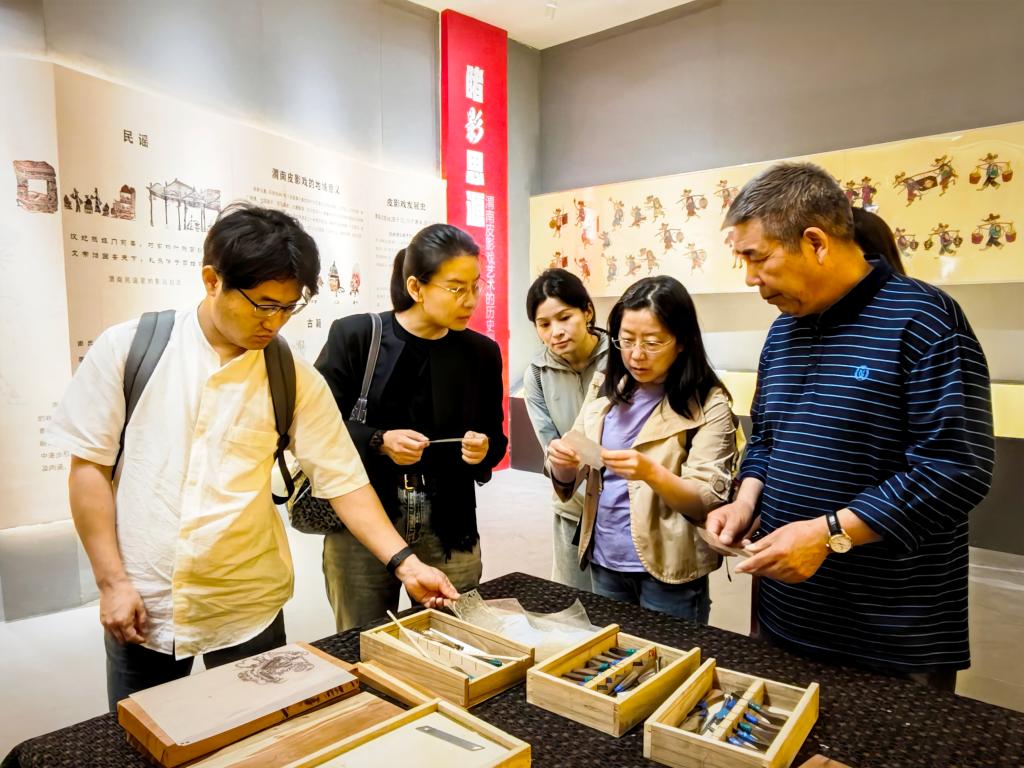 在学校中华优秀传统文化传承基地皮影艺术馆,雷茜一行详细听取了讲解,深入了解了皮影艺术的历史渊源、制作工艺以及在必赢官网的传承与发展情况。校必赢3003no1线路检测中心院长、美育中心主任郭楚伟介绍了必赢官网在非遗课程建设、社团活动开展、实践教学以及与地方非遗机构合作等方面的做法。双方围绕如何更好地将非遗融入教育教学全过程、激发学生对非遗的兴趣与热情以及培养非遗传承人才等议题进行了交流。