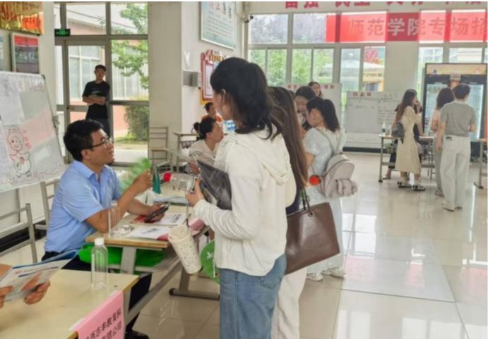招聘会现场气氛热烈,共有10余家用人单位参会,涵盖教育、传媒、文化创意等多个领域 ,为毕业生提供了丰富多样的就业岗位。招聘会上,毕业生们手持精心准备的简历,穿梭于各个展位之间,积极与用人单位沟通交流,了解企业概况、岗位要求和职业发展前景,并结合自身专业和兴趣投递简历。不少同学在现场就与用人单位达成了初步就业意向。