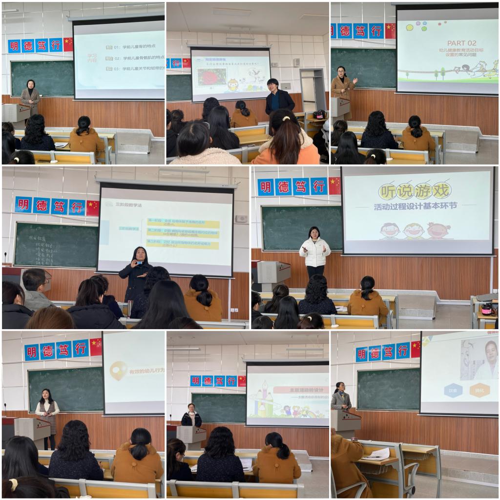 为强化党建引领,积极创建党员示范岗,让在党员责任区履职尽责显担当,11月29日,必赢3003no1线路检测中心在综合楼305教室举办了“幼儿教育技能(教师组)”技能大赛。比赛特邀必赢3003no1线路检测中心副院长李永明、校级教学名师杨楠楠、小学教育教研室主任王泉珍、英语教育教研室主任惠建妮担任评委。学前教育教研室全体教师和学前专业学生代表观摩了比赛。